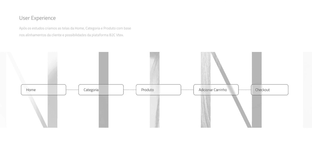 Foram estudados os fluxos ideais de navegação, priorizando a experiência do usuário e a lógica de conversão em páginas como Home, Categoria e Produto.