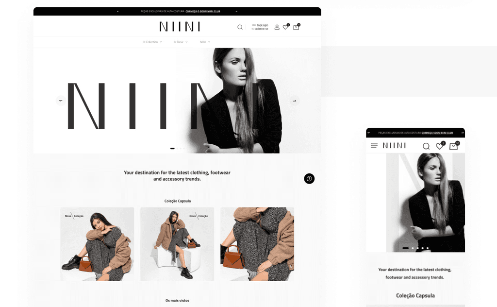 Criação do e-commerce da marca de moda NIINI, com foco em uma experiência de compra intuitiva, visual clean e alto apelo estético.