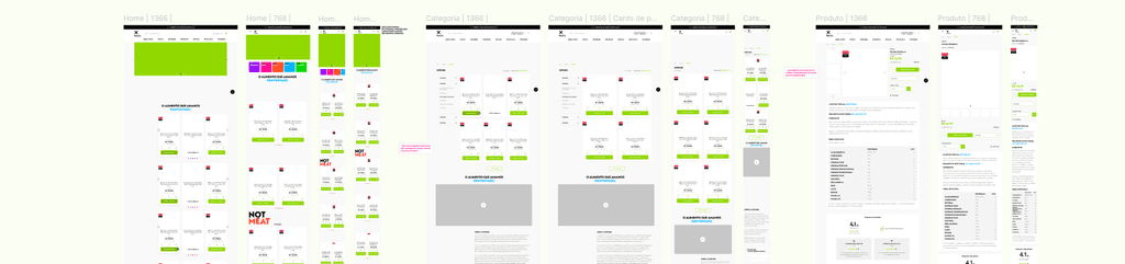 Após a aprovação do conceito visual, o projeto foi expandido para mais de 200 telas que compõem o e-commerce completo.