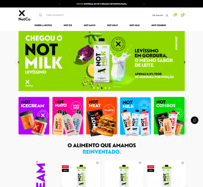 Design completo da nova experiência digital da loja online da NotCo, uma das marcas mais inovadoras no setor de alimentos.